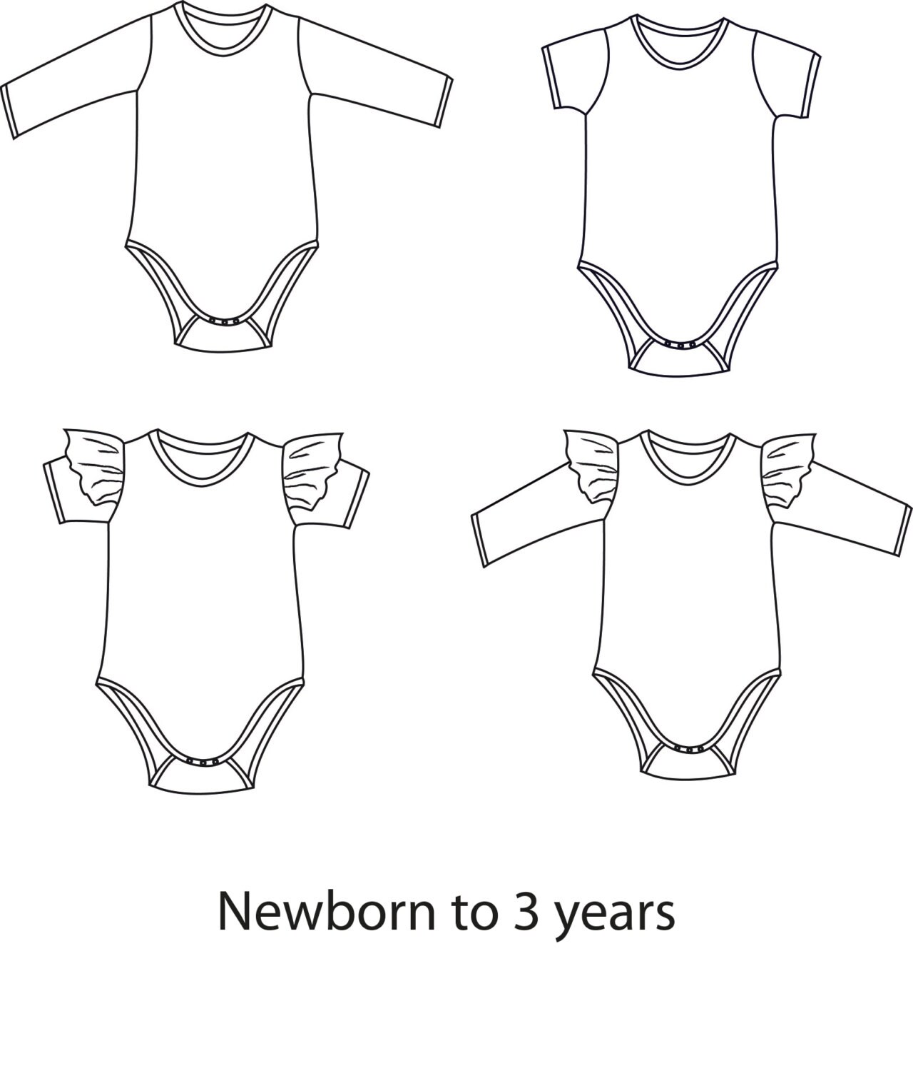 Baby Bodysuit Pattern Pdf Sewing Pattern Baby Onesie Sewing Pattern Flutter Sleeve Onesie Pattern